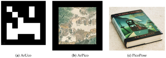 - Garrido-Jurado, S.; Salinas, R.M.; Madrid-Cuevas, F.; Medina-Carnicer, R. Generation of fiducial marker dictionaries using mixed integer linear programming. Pattern Recognit. 2016, 51, 481–491. [Google Scholar] [CrossRef]