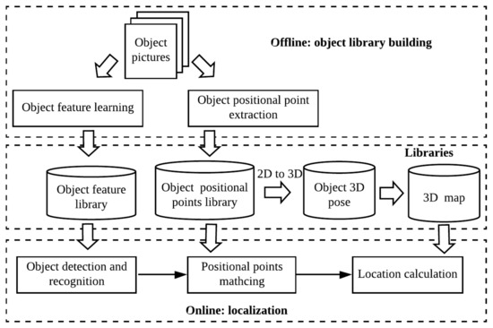 In this section, we present an overview of our pictorial planner object based VBL framework as shown in Figure 3. The framework has 3 stages: offline object learning and libraries building, libraries and map management, and real-time device localization.
