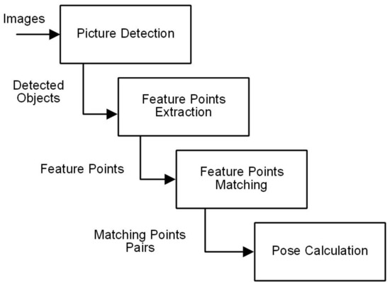 The PicPose workflow has four steps (Figure 6): planar object detection, feature extraction, feature matching, and pose calculation. The planar object detection component is to detect re-trained objects from a camera view. In order to obtain a high accuracy and robustness on object detection, a deep learning based object detection technology, SSD, is employed. The second step is to extract the detailed feature points from detected objects. Feature matching is the third and pivotal component for pose estimation as a translation matrix describing pose variation from a model to a detected object is generated. The quality of feature points matching determines the accuracy of the last step, pose calculation.