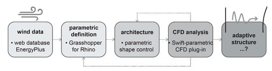 The proposed wind-based design approach intertwines parametric modeling with fast parametric CFD simulations. The wind-based shape-optimization design process consists of wind-driven form-finding in Grasshopper, followed by wind simulations in Swift, and then looping back to the parametric adjustments of the geometry until the desired performance of the design in the wind is achieved.
