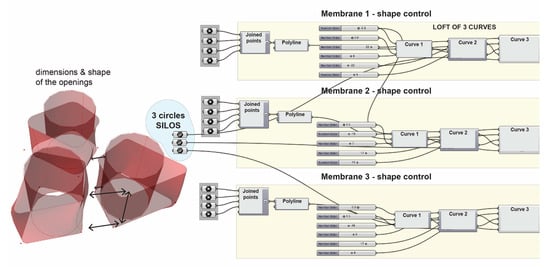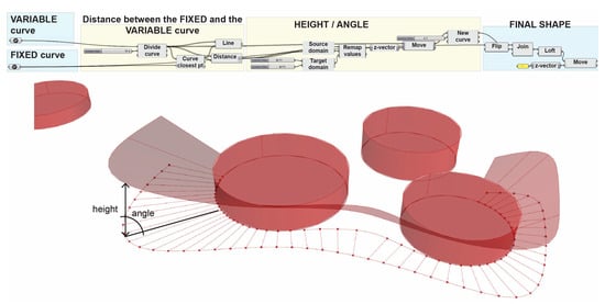Parametric designing simplifies the process of working with multiple design alternatives, therefore leading to selecting the most suitable variant within the design context [39]. The parametric architectural software Rhinoceros and its algorithmic plug-in, Grasshopper, enable the exchange of information between the design and simulation software, which, applied to the nature-driven architectural form-finding, leads to the creation of several environment-responsive design choices [40].