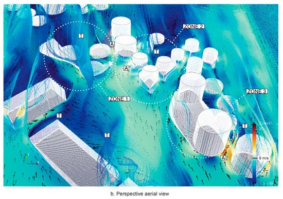 3.3.1. Zone 1: Architecture Deflecting the Wind Flow