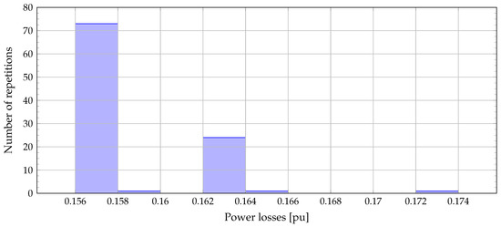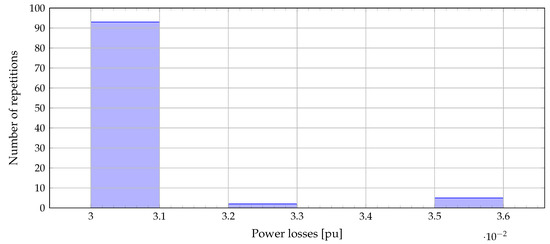 Once the offsprings have been created by the selection, recombination, and mutation stages, these are evaluated in the fitness function, i.e., optimization model (14)–(18). Let us suppose that the fitness function of the offspring is and the fitness function of the offspring is . Subsequently, the potential offspring that will be part of the population is selected as the minimum of both fitness function values: (i) select if , or (ii) select otherwise.