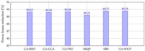 - The computational results demonstrate that the hybrid GA-SOCP approach has an efficiency higher than 70% to find the global optimal solution in both test feeders analyzed. In addition, the proposed approach presents better solutions than commercial solvers available in GAMS and classical metaheuristics such as genetic algorithms and particle swarm optimizer, and derived approaches