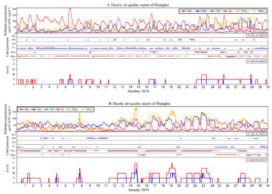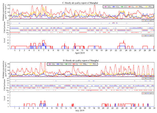Hourly pollutant concentration variation and air quality evaluation result of chief pollutant and level of Shanghai.