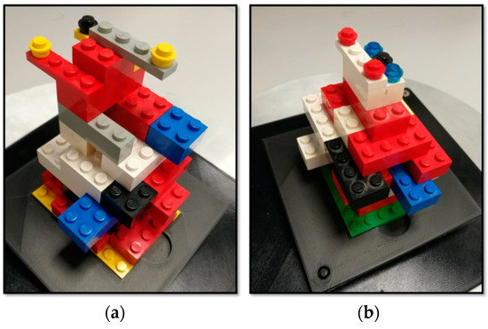 Figure 8). Both have 29 parts. Product P1 has 18 different parts and products P2 has 13; the parts are Lego blocks configured as shown in