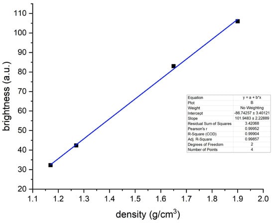 Then, for each of the four elements of the calibration standard, a calibration curve was created, allowing for the determination of the density of the samples.