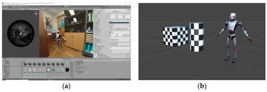 Pre-visualization system: (a) pre-visualization Unity scene and (b) simple 3D object.