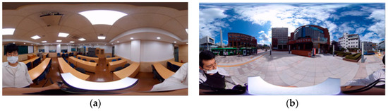 Experimental space for recording of 360° video: (a) indoor and (b) outdoor.