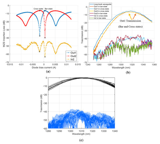 - Kouissi, M.; Charbonnier, B.; Algani, C. Fast 2×2 Mach-Zehnder Switch for Optical Interconnect Applications. Opt. Soc. Am. 2020, PsTh2F.5. [Google Scholar] [CrossRef]