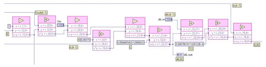 Applying Equation (15) and the algorithm proposed for the integral, the code to obtain iL(t) was developed as shown in Figure 12. While the code to model the output voltage Vout(t) is illustrated in Figure 13.