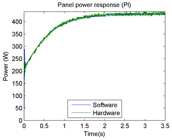 Response of the PVPE power with the MPPT controller emulator.