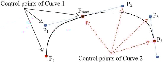 Given that the quadratic and cubic Bézier curves share an endpoint (, as shown in Figure 8), the gradient of Curves 1 and 2 at are