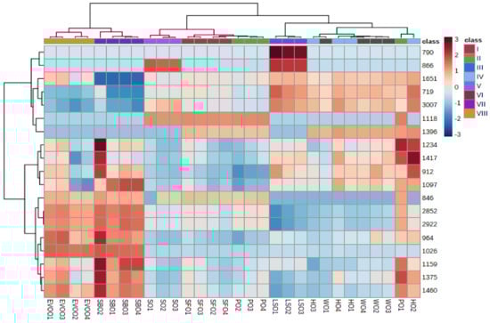 A more intuitive illustration of the correlations between the oil samples and variables (wavenumbers) was also realized using the Metaboanalyst software The correlation matrices between variables, and between samples (data not shown) were represented graphically and then integrated in the heatmap (correlations between the samples and variables), as presented in Figure 8.