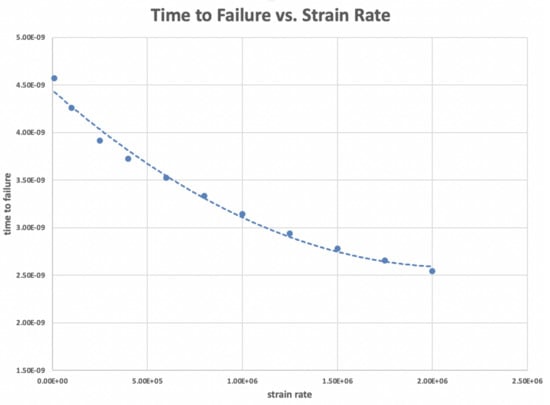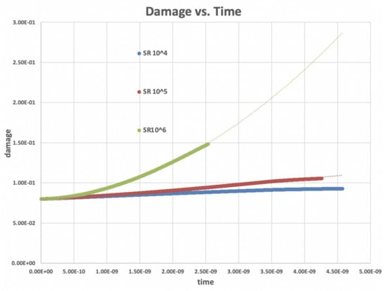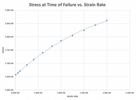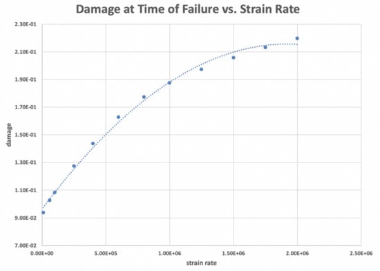 5.2. Time to Failure, Damage and Stress vs. Strain Rate