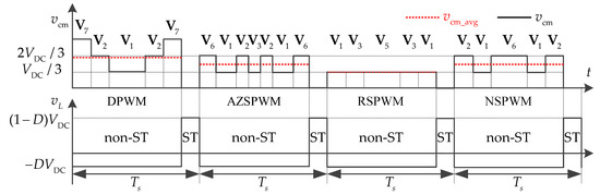 - Noroozi, N.; Zolghadri, M.R.; Yaghoubi, M. Comparison of Common-Mode Voltage in Three-Phase Quasi-Z-Source Inverters Using Different Shoot-through Implementation Methods. In Proceedings of the CPE-POWERENG, Doha, Qatar, 10–12 April 2018; IEEE: Piscataway, NJ, USA, 2018; pp. 1–6. [Google Scholar]