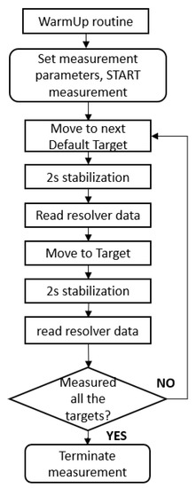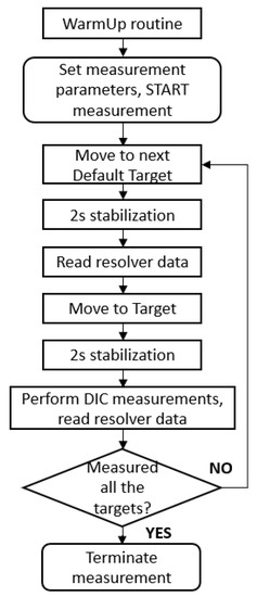 The measurement procedure was the same as in the case of robot joint variables measurement. The flowchart (