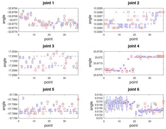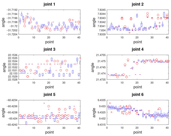 Figure 10) show the influence of the approach direction on the individual joint variables of the robot. As already mentioned in the article, these data come from the drive resolvers of the individual axis of the robot, i.e., they do not include errors that occur “higher” on the structure.