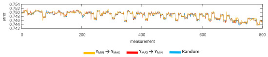 To confirm the hypothesis that the endpoint repeatability depends, among other things, on the direction of approach to this point, it was necessary to realize the selected measurements in three different ways. For each of these measurements, a set of starting points was created, then three different measurements were executed under the same conditions, with the difference that in the first measurement the points were selected in order from the lowest to the highest value of the y-axis (yMIN → yMAX), the second measurement was in the opposite direction (yMAX → yMIN) and in the third one, the points were chosen in random order.