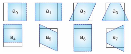 38]. If the transformation parameters of possible displacement, elongation, shear, and distortion of the facet