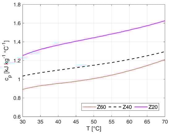Figure 6. Zeolite foam: specific heat of Z20, Z40, and Z60 foams.