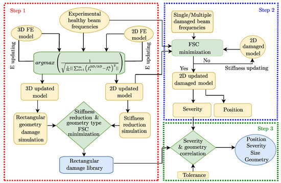 In this section, a methodology for damage properties identification is described in three main steps. Figure 4 represents a complete flowchart of the proposed strategy for geometry damage properties identification.