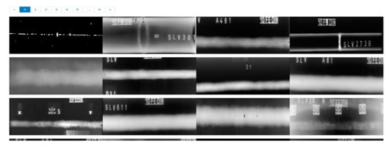 Some snapshots of the X-ray image data set are depicted in Figure 8 and Figure 9, and illustrate the description screen of the image models. In the presence of defects, a category labeling bounding box is produced, and the regions within the region proposals box is used in the GoogLeNet architecture to perform feature value extraction operations on the trained DNNs. Then, the optimization algorithm Adam is used to refine the model. The process can efficiently distinguish whether it is a defect or a background pixel [] to reduce the error rate and correct the position of the bounding box through a linear regression model. In addition, the labeling tool ImageImg software is used for the object labeling and compilation as shown in Figure 10. The LabelImg software will automatically check whether there is a corresponding xml file extension tag file in the system so that the overall training can be conducted more efficiently.
