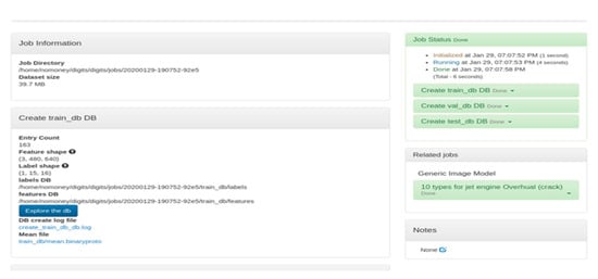 The image data sets were taken from the archives of the engine repair records. Next, preprocessing using the Python toolkit’s image processing library, Python Imaging Library (PIL), was executed to convert the image file format and adjust the output size to a universal lightning memory-mapped database (LMDB) data format []. All training and testing tasks were conducted using image data in the LMDB file format. The engine repair plant had accumulated a data gallery of X-ray images.