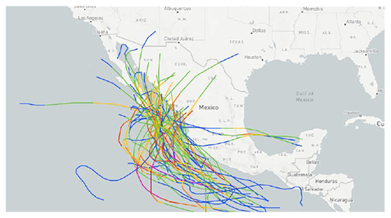 - Farfán, L.M.; D’Sa, E.J.; Liu, K.B.; Rivera-Monroy, V.H. Tropical Cyclone Impacts on Coastal Regions: The Case of the Yucatán and the Baja California Peninsulas, Mexico. Estuaries Coasts 2014, 37, 1388–1402. [Google Scholar] [CrossRef]