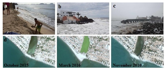 - Escudero, M.; Silva, R.; Mendoza, E. Beach Erosion Driven by Natural and Human Activity at Isla del Carmen Barrier Island, Mexico. J. Coast. Res. 2014, 71, 62–74. [Google Scholar] [CrossRef]