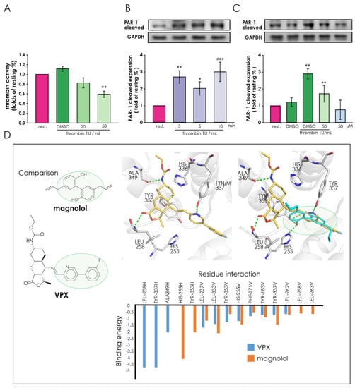 3.2. Magnolol Hindered the VSMCs from Thrombin-Mediated CTGF Expression via Thrombin Activity Interfering, PAR-1 Cleavage Inhibiting and PAR-1 Active Site Blocking