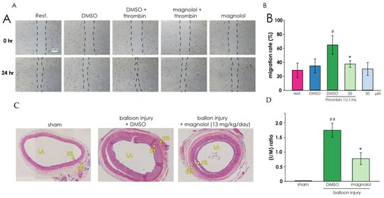 3.5. Treatment of Magnolol Moderates the Migration of VSMCs and Mitigates Restenosis