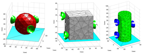 Configuration of the initial grasping points for a sphere, a cube, and a cylinder.