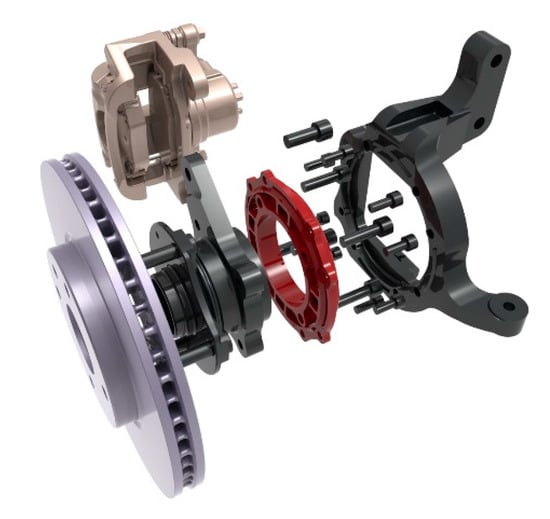 The tire three-component force sensor in spoke form is one of the most common [10]. As shown in Figure 1, the tire force sensor is connected to the rim and rotates with the wheel, and is installed between the rim and the hub. The advantage of the sensor is that the force transmission path of the tire force passes completely through the sensor, and it can detect the tire force accurately. A common spoke-type three-component force sensor consists of the strain gauge, elastomer, encoder, adapter, slip ring and conductor pole etc.