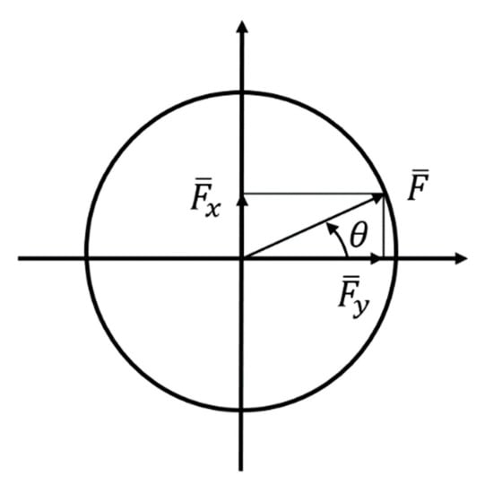 The controller in this paper considers the effect of longitudinal force on the lateral force of the tire, and the longitudinal and tangential forces of the tire at the limit of adhesion form a friction circle with a radius less than [15], as shown in Figure 5. With the introduction of tire force feedback, the tire force vector and its longitudinal and lateral components are known, limiting the maximum value of the state according to the friction circle. Expressed in Equation (9).