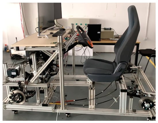 The HIL test of this controller was done in an NI Veristand real-time simulation system, the upper computer used the CarSim vehicle model, and the control strategy was built in the Simulink environment. The HIL frame contained the ESC system, braking circuit, wheel cylinder pressure sensor, upper computer, lower computer, and the corresponding function boards, shown in Figure 12. An HIL comparison test was performed under the same conditions as in Section 4.