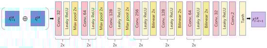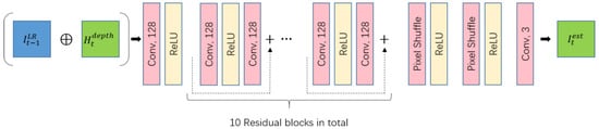 In this step, the low-dimensional depth map of the high-resolution image of the current frame and the low-resolution image of the current frame are sent to the SuperNet to obtain the final high-resolution frame. The network structure of SuperNet is shown in the Figure 6.
