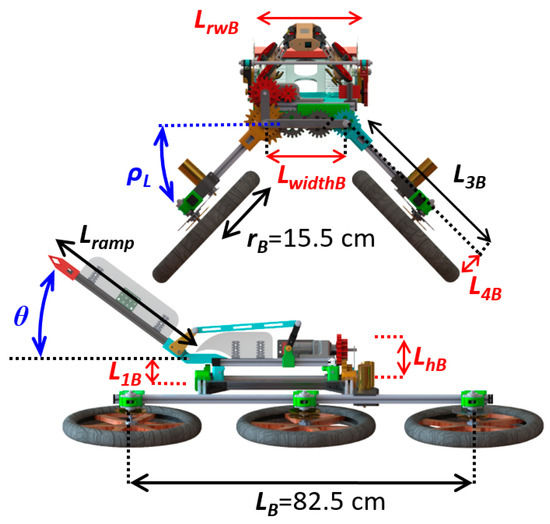 | Wheel/whegs radius | rR = 2.8 cm | rB = 15.5 cm |