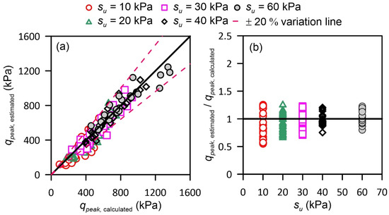 The proposed equation is compatible with the qpeak model of Hu et al. [12]. Figure 11 compares the predicted peak penetration resistances with the numerically calculated outputs. The residuals between the numerically calculated and the predicted peak resistances are within 20%. The comparisons highlight that the proposed equation provides reliable estimates of peak penetration resistance even for stiff clays with su up to 60 kPa.