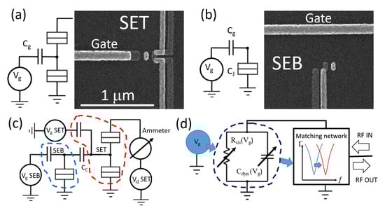 - Schoelkopf, R.J.; Wahlgren, P.; Kozhevnikov, A.A.; Delsing, P.; Prober, D.E. The radio-frequency single-electron transistor (RF-SET): A fast and ultrasensitive electrometer. Science 1998, 280, 1238–1242. [Google Scholar] [CrossRef]