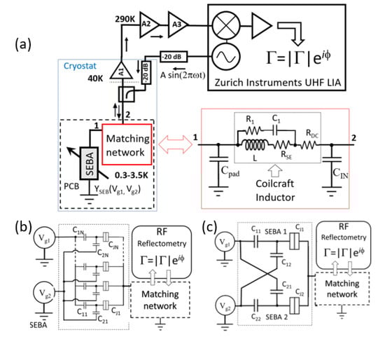 - Ares, N.; Schupp, F.J.; Mavalankar, A.; Rogers, G.; Griffiths, J.; Jones, G.A.C.; Briggs, G.A.D. Sensitive Radio-Frequency Measurements of a Quantum Dot by Tuning to Perfect Impedance Matching. Phys. Rev. Appl. 2016, 5, 034011. [Google Scholar] [CrossRef]
