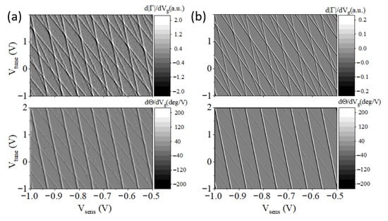 - Gonzalez-Zalba, M.F.; Barraud, S.; Ferguson, A.J.; Betz, A.C. Probing the limits of gate-based charge sensing. Nat. Commun. 2015, 6, 1–8. [Google Scholar] [CrossRef]