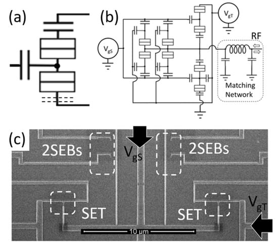 - Zimmerman, N.M.; Keller, M.W. Dynamic input capacitance of single-electron transistors and the effect on charge-sensitive electrometers. J. Appl. Phys. 2000, 87, 8570–8574. [Google Scholar] [CrossRef]