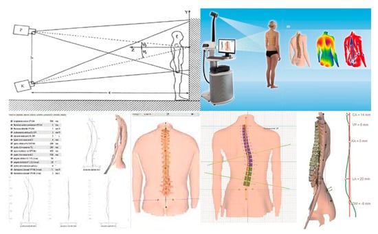 - Mangone, M.; Raimondi, P.; Paoloni, M.; Pellanera, S.; Di Michele, A.; Di Renzo, S.; Vanadia, M.; Dimaggio, M.; Murgia, M.; Santilli, V. Vertebral rotation in adolescent idiopathic scoliosis calculated by radiograph and back surface analysis-based methods: Correlation between the Raimondi method and rasterstereography. Eur. Spine J. 2013, 22, 367–371. [Google Scholar] [CrossRef]