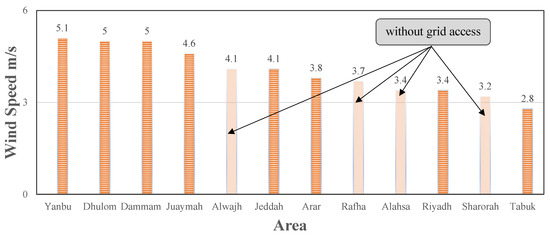 Figure 1. Regional sites of wind turbines in Saudi Arabia.