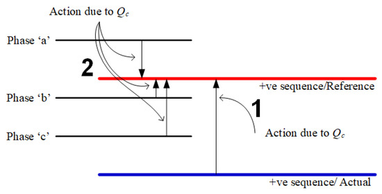 the compensation is computed to minimize the deviation between the actual positive sequence and the reference voltage, hence the overall voltage profile could be improved