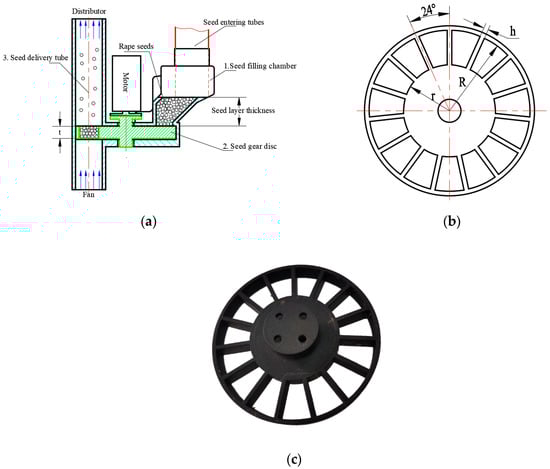 - Huang, X.; Xu, H.; Zhang, S.; Li, W.; Luo, C.; Deng, Y. Design and experiment of a rape aerial seeding in lines device. Trans. CSAE 2020, 36, 78–87. (In Chinese) [Google Scholar]