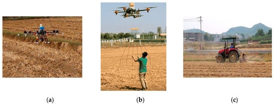 - Song, C.; Zhou, Z.; Luo, W.; Jiang, R.; Lan, Y.; Zhang, H. Thoughts on application of agricultural material spreading technology in unmanned helicopter. J. Agric. Mech. Res. 2018, 40, 1–9. (In Chinese) [Google Scholar]