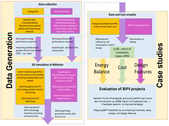 Although the first application project dates back to 1991 [], BIPV systems are relatively under-researched, which is evidenced by approximately 1500 publications as compared to more than 100,000 on the subject of PV, according to a search in Scopus. As field data for BIPV projects are rarely available, there exists a lack of practical insights. Simulation tools and modelling approaches are therefore required to generate information about the energy production, architectural design features and cost aspects of BIPV systems.
