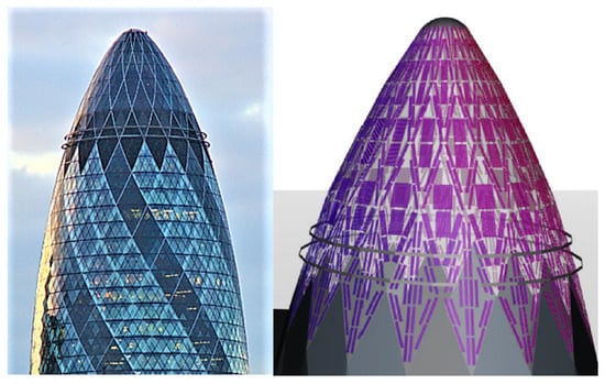 “The Gherkin” London, UK [] and the BIPV modules designed for this building [].